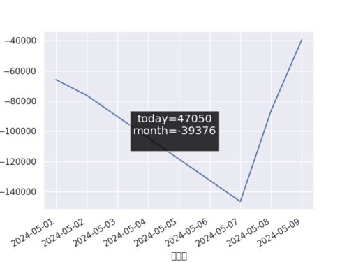 当日損益:47050 当月損益:-39376 -----本日の売買----- 売 1605 INPEX 200.0 2300 売 3349 コスモス薬品 100.0 29000 売 3436 SUMCO 200.0 800 売 3549 クスリのアオキホールディングス 200.0 -3100 売 3563 FOOD & LIFE COMPAN…